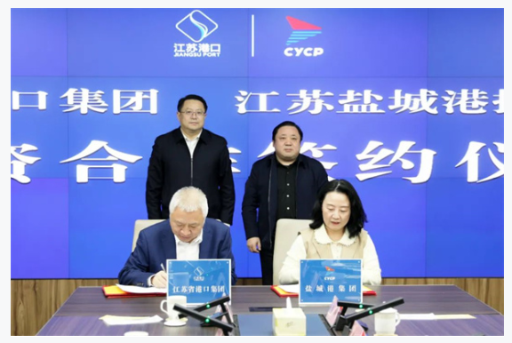 新華報(bào)業(yè)網(wǎng)訊 2月15日,江蘇省港口集團(tuán)、江蘇鹽城港控股集團(tuán)投資合作協(xié)議簽約儀式成功舉行。江蘇省港口集團(tuán)黨委書(shū)記、董事長(zhǎng)陳明,鹽城港集團(tuán)黨委書(shū)記、董事長(zhǎng)周正雄出席活動(dòng)并鑒簽。江蘇省港口集團(tuán)黨委委員、副總經(jīng)理唐洪生,江蘇省港口集團(tuán)總工程師、企業(yè)發(fā)展部總經(jīng)理朱從富,鹽城港集團(tuán)黨委副書(shū)記、董事、總經(jīng)理陸帥,鹽城港集團(tuán)領(lǐng)導(dǎo)班子成員、副總信息師等參加。集團(tuán)副總經(jīng)理袁欣代表集團(tuán)與江蘇省港口集團(tuán)簽訂協(xié)議。