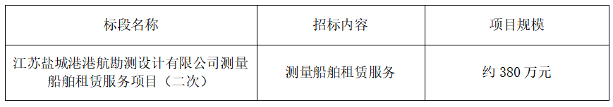 一、?江蘇鹽城港港航勘測設(shè)計有限公司?就江蘇鹽城港港航勘測設(shè)計有限公司測量船舶租賃服務(wù)項目(二次)進行公開招標(biāo),誠邀合格的投標(biāo)人前來報名參加。