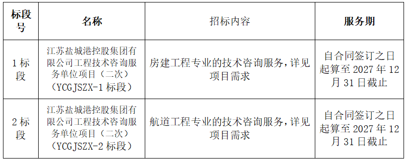 2、招標(biāo)范圍(采購需求):中標(biāo)人將作為江蘇鹽城港控股集團(tuán)有限公司及其下屬子公司的技術(shù)咨詢服務(wù)單位,承擔(dān)下列工作(包含但不限于):