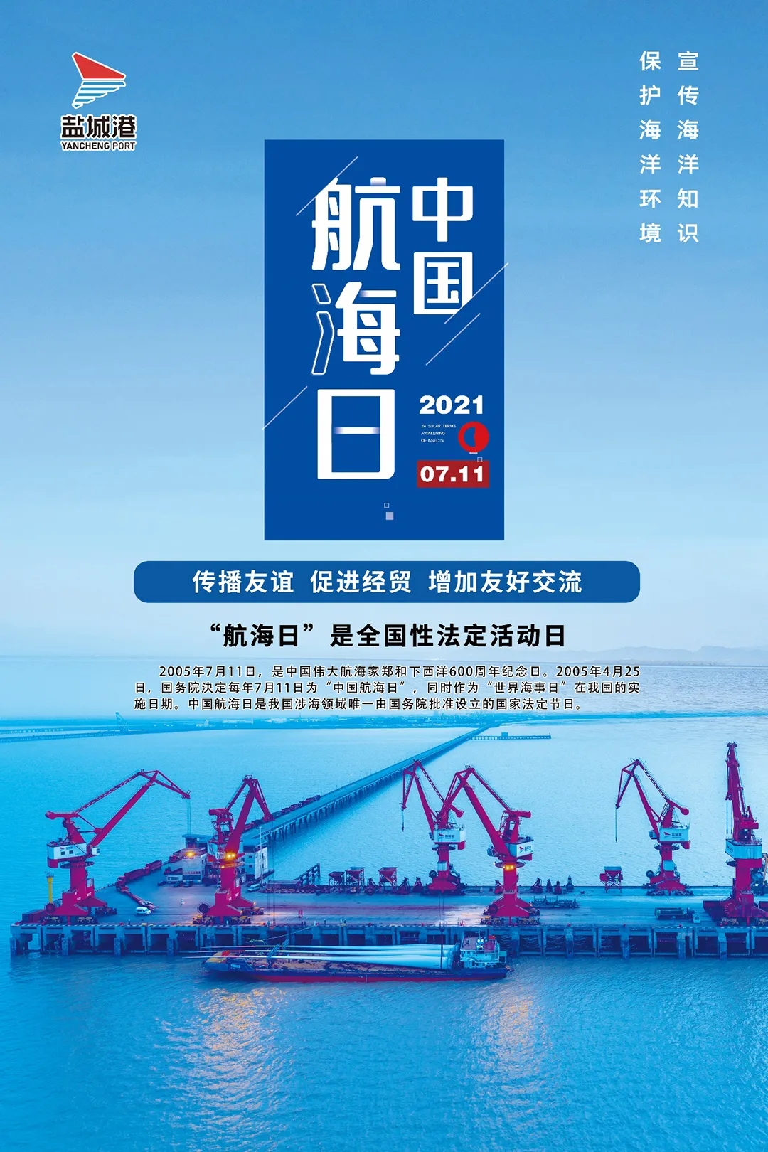 六百多年前,鄭和的船隊(duì)沿著海上絲綢之路,創(chuàng)下七下西洋的壯舉,開(kāi)拓了全新的航海事業(yè)。數(shù)百年后,又有一批批航海人,他們披荊斬棘、乘風(fēng)破浪,擔(dān)負(fù)使命、興海報(bào)國(guó),努力寫(xiě)就一段段新的航海傳奇。7月11日,是第17個(gè)中國(guó)航海日,今天,也是每一個(gè)鹽城港人的節(jié)日,作為新時(shí)代、新航程的追夢(mèng)人,他們正以涓滴之力匯聚成昂揚(yáng)向上的拼搏勁頭。