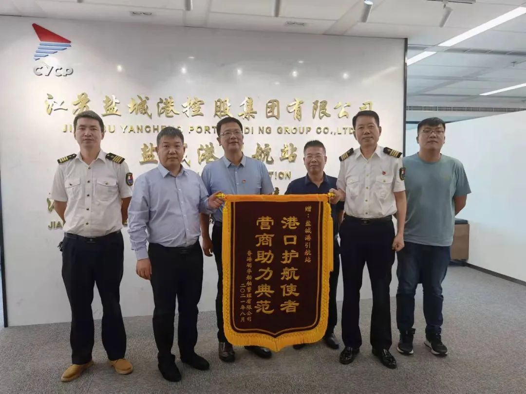 香港明華船務公司拜訪集團 向鹽城港引航站贈送錦旗