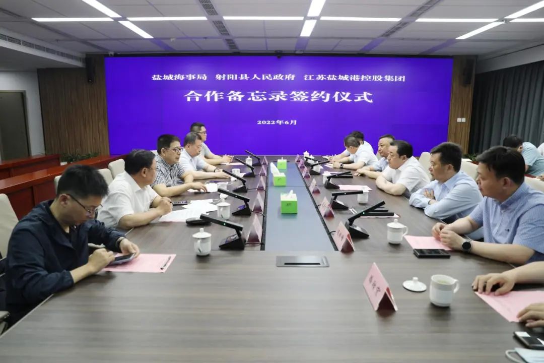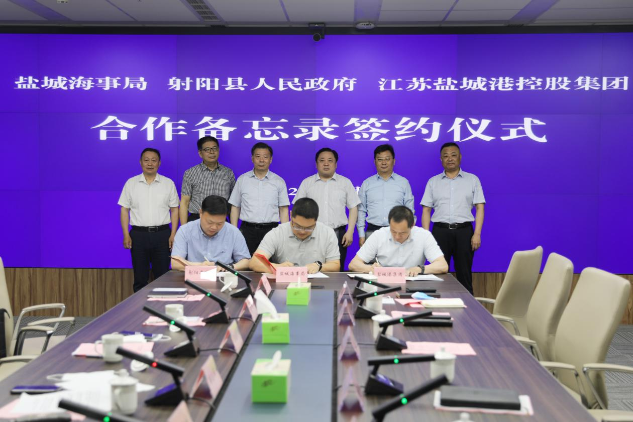 鹽城海事局、射陽縣人民政府、鹽城港控股集團合作備忘錄簽約儀式在我集團舉行