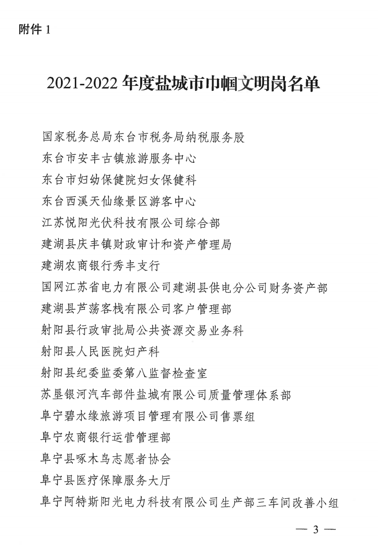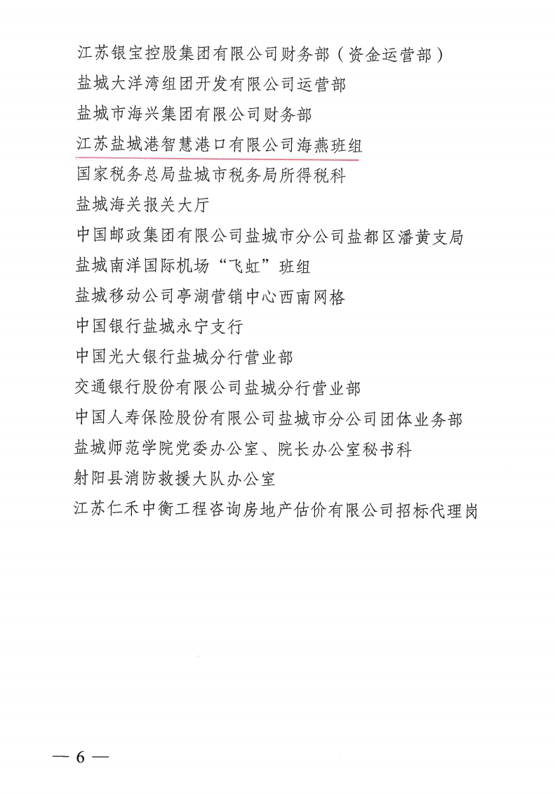 ????近日,市城鎮(zhèn)婦女“巾幗建功”活動(dòng)領(lǐng)導(dǎo)小組、市農(nóng)村婦女“雙學(xué)雙比”競賽活動(dòng)領(lǐng)導(dǎo)小組、市婦女聯(lián)合會聯(lián)合發(fā)布《關(guān)于命名2021-2022年度全市城鄉(xiāng)婦女崗位建功先進(jìn)集體(個(gè)人)的決定》,鹽城港智慧港口公司海燕班組榮獲“2021-2022年度鹽城市巾幗文明崗”榮譽(yù)稱號,鹽城港項(xiàng)目建設(shè)管理咨詢公司黨總支書記、執(zhí)行董事、總經(jīng)理劉春燕榮獲“2021-2022年度鹽城市巾幗建功標(biāo)兵”榮譽(yù)稱號。