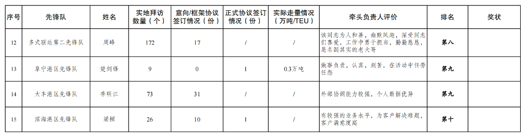第一名:航運集團先鋒隊 馬躍東,射陽港區先鋒隊 侯長飛,濱海港區先鋒隊 高鵬,響水港區先鋒隊 張敏 2份