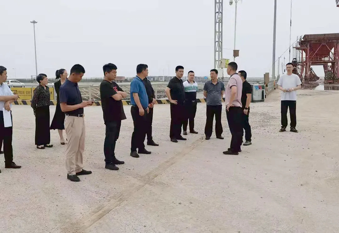 7月8日下午,鹽城市邊檢站站長顧志祥率隊來射陽港區調研,現場了解港區查驗設施推進情況,并展開深入交流。建設集團總經理王健楓、射陽港區副總經理董棟梁,以及相關設計單位負責同志參加。