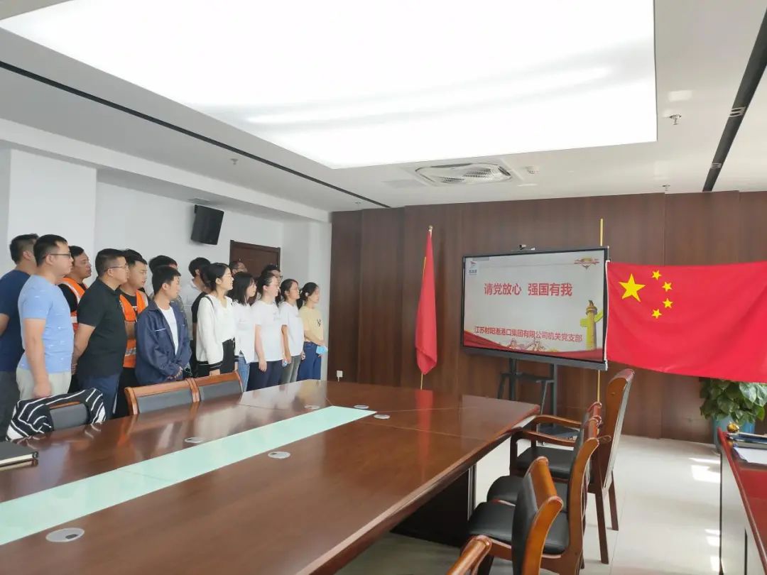 活動中,由優秀團員代表帶領著大家面向團旗,重溫入團誓詞,讓全體團員牢記入團初心,在中國共產黨和共青團的堅強領導下,發揚不怕艱苦、不畏艱難的革命精神,為鹽城港高質量發展,砥礪前行、勇往直前。活動結尾,他們飽含深情的聲音連呼三遍“請黨放心,強國有我!”,這八字誓詞鏗鏘有力,這響亮的青春誓言震撼人心!