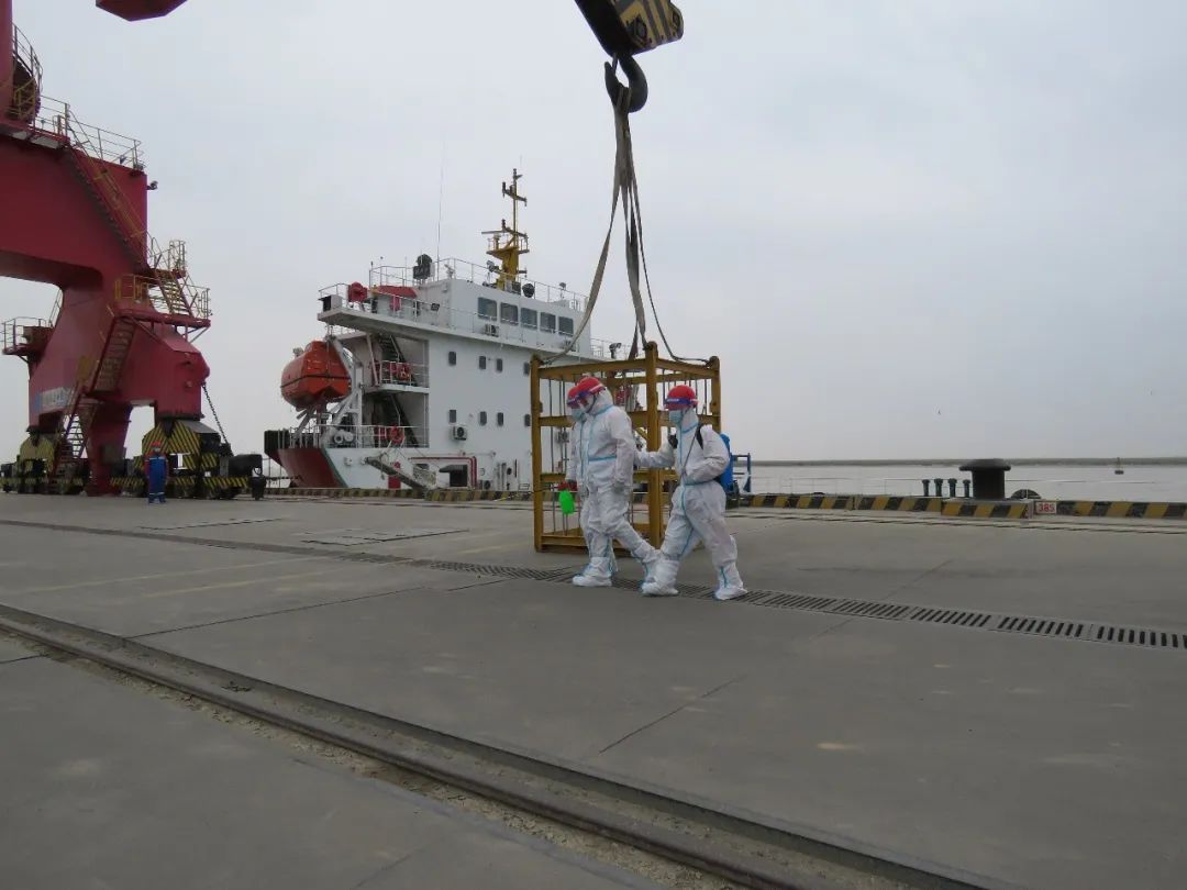 此次演練真實模擬了港區大件泊位在靠泊船舶時,發現發熱船員的應急處置過程。演練中,港區疫情防控領導小組迅速啟動疫情防控應急預案,立即暫停碼頭作業,同時第一時間封閉現場,隨后使用吊籃將發熱病人吊運至碼頭平面,并由應急車送至縣人民醫院發熱門診就診。