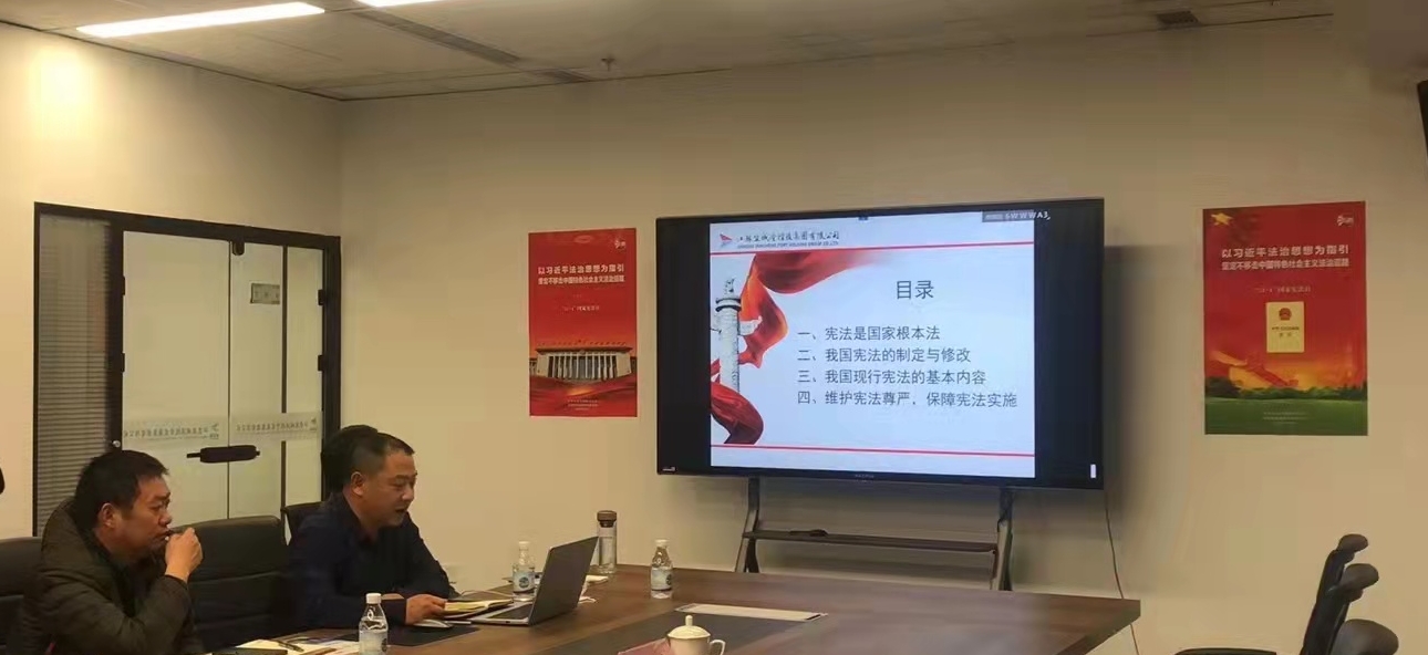 “憲法宣傳周”活動開展以來,各級公司紛紛在醒目位置張貼憲法宣傳海報,營造了濃厚的宣傳氛圍。12月4日,集團本部及各子(控)公司全員開展憲法學習教育活動。集團法務部推出《法治護航》(12·4國家憲法日專刊),本期專刊讀本匯編了憲法原文、憲法沿革、習近平總書記關于憲法的重要論述、憲法學習自測題;大豐港區發布了憲法知識公示欄,組織員工參觀學習;響水港區發放了憲法小冊子,組織“憲法學習進工地”活動;集團官網“法治護航”版塊專題發布《憲法一直在我身邊》《憲法讓生活更美》《我與憲法》視頻,通過一系列生動圖片、視頻,形象生動普及憲法知識。