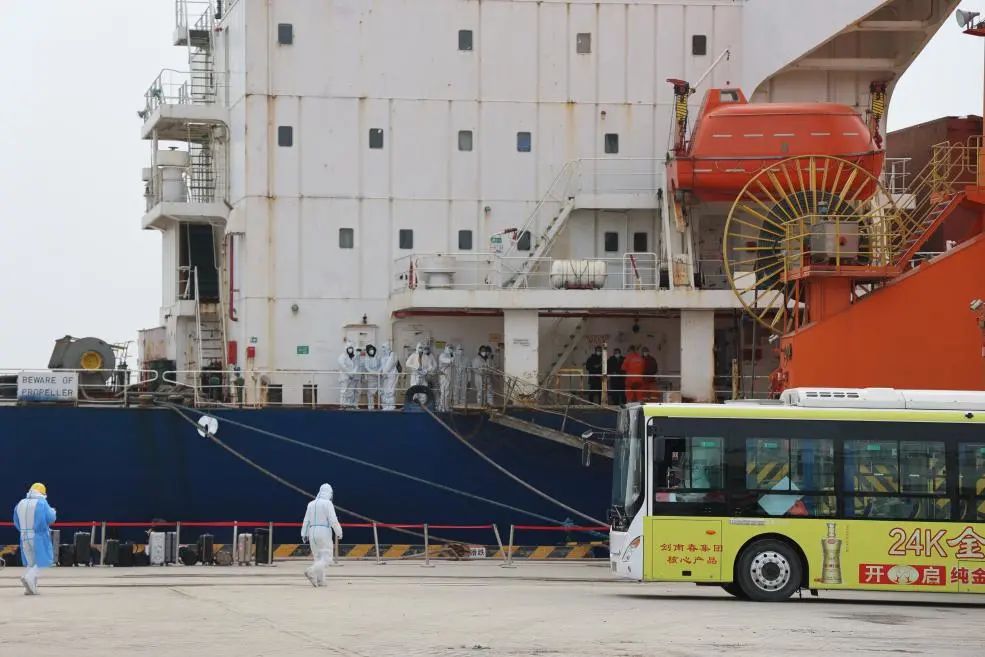 為確保中國船員換班工作“零等待”“零延時(shí)”,濱海港區(qū)第一時(shí)間啟動船員換班閉環(huán)管控工作流程和應(yīng)急處置流程,與濱海縣聯(lián)防聯(lián)控機(jī)制各成員單位協(xié)同配合,確保換班中國船員自國門至家門的全程閉環(huán)管理。讓船員感受到回到家的溫暖。