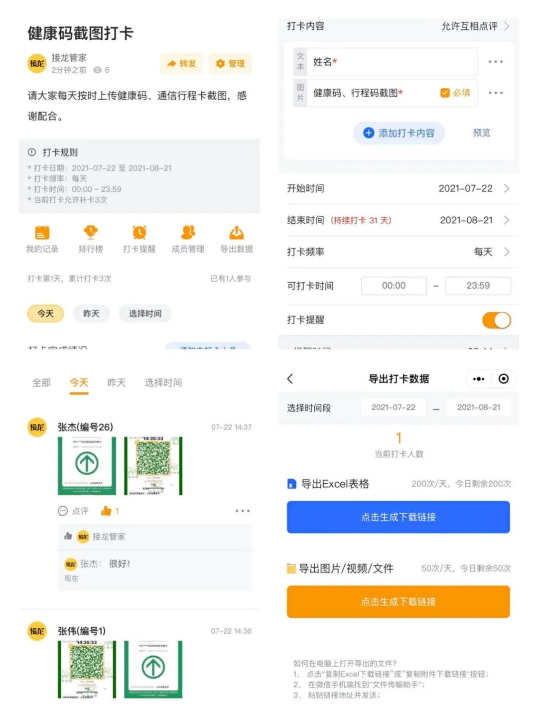 當前,疫情防控形勢依舊嚴峻,面對防疫工作的艱巨繁雜,鹽城港港口公司散貨碼頭分公司堅持疫情防控和安全生產兩手抓、兩手硬、兩促進,創新性使用“接龍管家Pro”微信小程序,助力做好防疫工作。原本安全管理人員每天要花3小時左右統計所有職工的信息,現在僅用2分鐘時間就能完成檔案登記的所有流程,大大提高了登記效率。