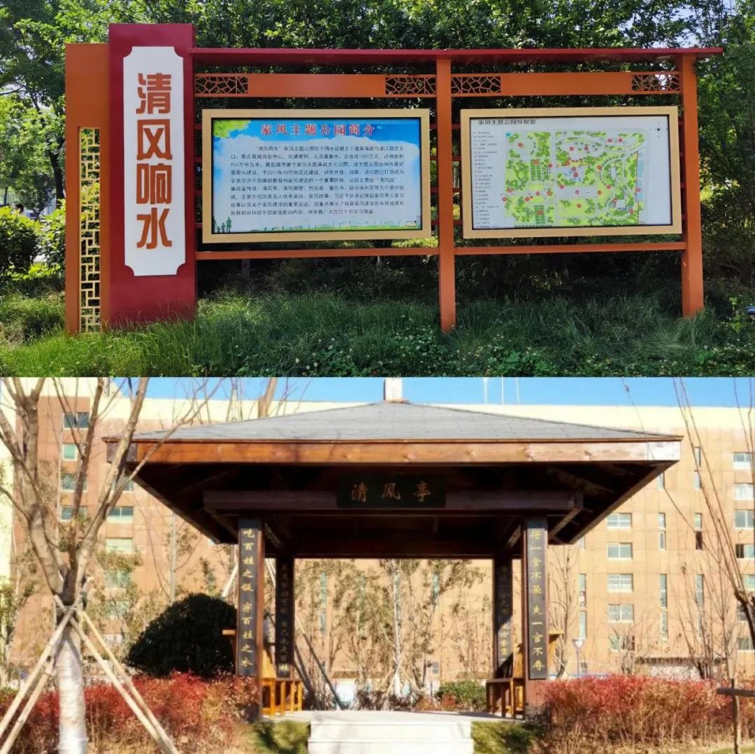 “一紙書來只為墻,讓他三尺又何妨?長城萬里今猶在,不見當年秦始皇。”在“清風園”標牌上記載著安徽桐城“六尺巷”佳話。步入園內迎來“清廉墻”,鏤空荷花造型,寓意“出淤泥而不染,濯清漣而不妖”高尚品質。造型如古時代竹簡的“竹風卷”上刻有歷屆黨和國家領導人的清廉警句,充溢著廉潔文化氛圍。公園內的“警言書”、“清風照壁”、“清風亭”展出中國古代十大經典家訓、清官廉吏故事、勤廉主題詩詞等。在公園北出口重點展現《響水縣黨員干部家風建設十條公約》,這十條公約對黨員干部工作、生活行為提出了明確要求,在場員工都深受啟迪。