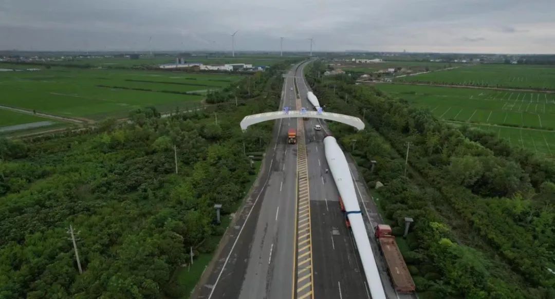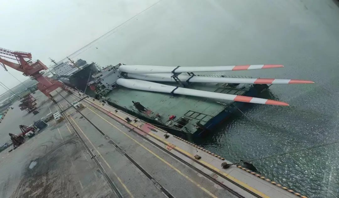 國電投山東海陽項目首套風電設備系濱海港建港以來進港海運最大的風力葉片,全長97米。此次運載的風力葉片從南通運至濱海港區碼頭,由于該葉片體身長,運輸過程中涉及安全系數較大,為確保萬無一失,從327省道轉入濱海港區后,生產經營條線安排專班人員實時跟蹤服務,及時協調清理影響拐彎的部分隔離護欄,保障途中各轉彎要道口的通行安全,順利抵達目的地——濱海港碼頭1號泊位。至此,三根風葉片全部被安全高效地裝載上貨輪,運往國電投山東海陽目的地。