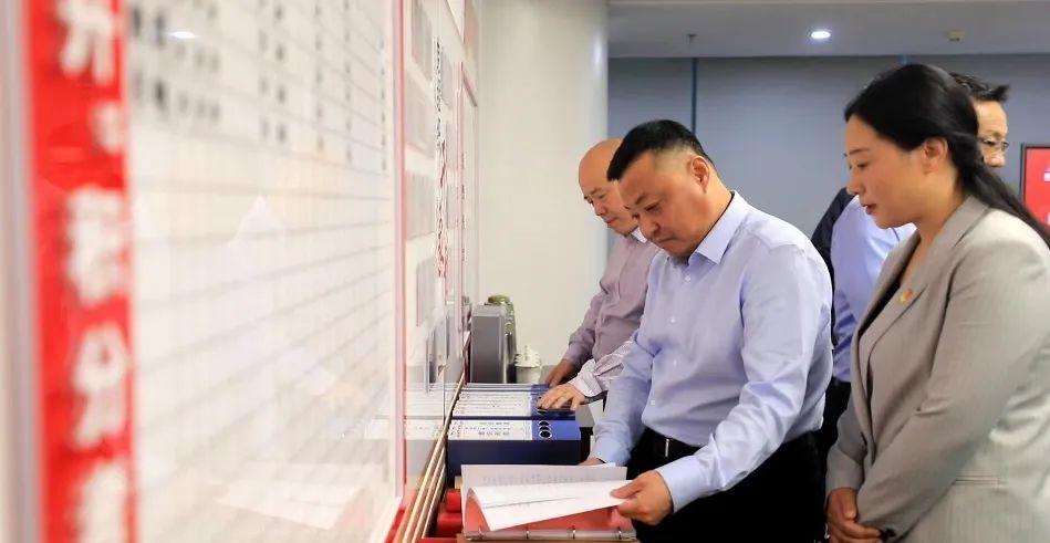 與會人員現(xiàn)場觀摩了陸港集團(tuán)機(jī)關(guān)黨支部黨建、群團(tuán)開展工作亮點(diǎn)展示,詳細(xì)了解該支部標(biāo)準(zhǔn)化建設(shè)臺賬資料整理、黨建陣地規(guī)范化建設(shè)情況。