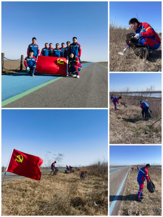 鹽城港農(nóng)業(yè)科技集團(tuán)的青年小伙們身著工作服,在黨旗的引領(lǐng)下來(lái)到海堤公路,開展環(huán)境保護(hù)志愿活動(dòng),助力綠色生態(tài)發(fā)展,于新時(shí)代的春風(fēng)中賡續(xù)傳承雷鋒精神。