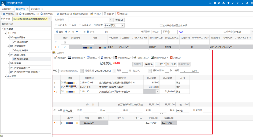 據介紹,通過集團OA系統與浪潮系統進行對接開發,差旅費、發票入賬、付款審批、內部資金撥付等5類單據實現了憑證自動生成,可覆蓋響水港業務30%的憑證數量。自動化憑證不僅有效減少了手工憑證工作量,提高了財務人員工作效率,同時很大程度避免了人工錄入錯誤的出現,進一步提升了憑證信息的準確性。