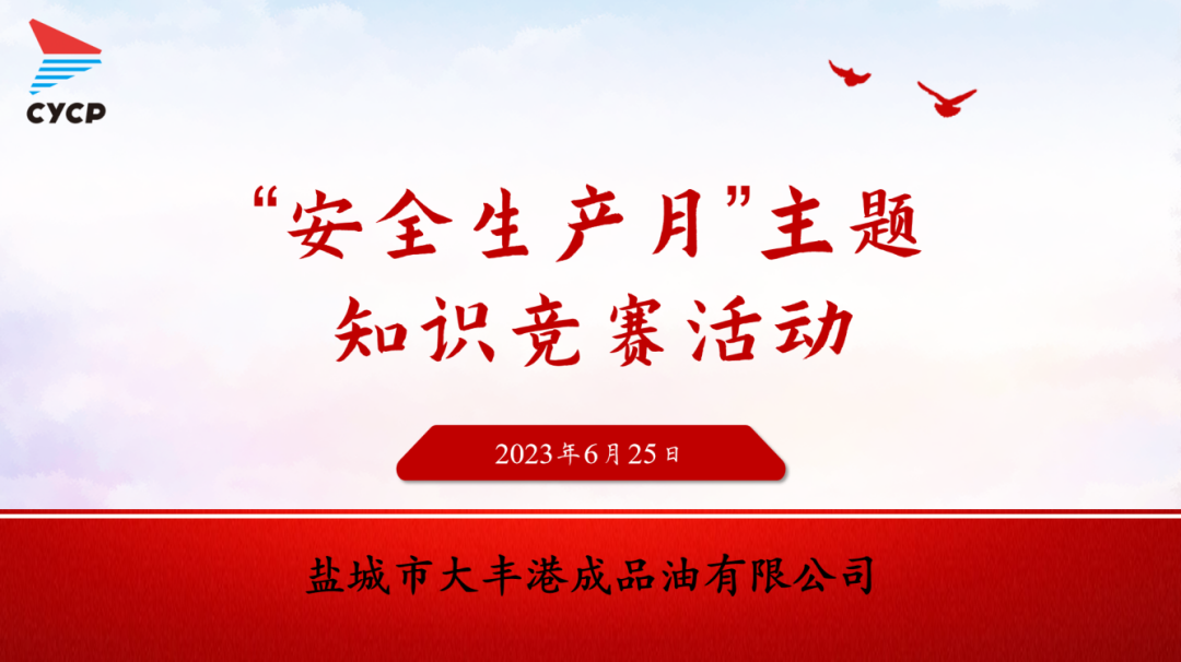 為深入推進(jìn)鹽城港“安全生產(chǎn)月”主題活動(dòng),營(yíng)造“人人講安全、個(gè)個(gè)會(huì)應(yīng)急”的良好氛圍,近日,鹽城港大豐港區(qū)成品油公司組織開(kāi)展“安全生產(chǎn)月”主題知識(shí)競(jìng)賽,確保安全生產(chǎn)宣傳進(jìn)庫(kù)區(qū)、進(jìn)班組。