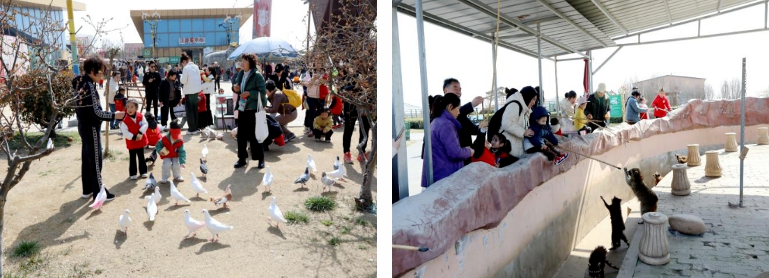 在大豐港區動物園內,孩子們興奮地喂著鴿子,逗著小浣熊,騎著大馬,圍著長頸鹿,各種動物的表演引得孩子們陣陣歡笑,家長們為之駐足拍照。