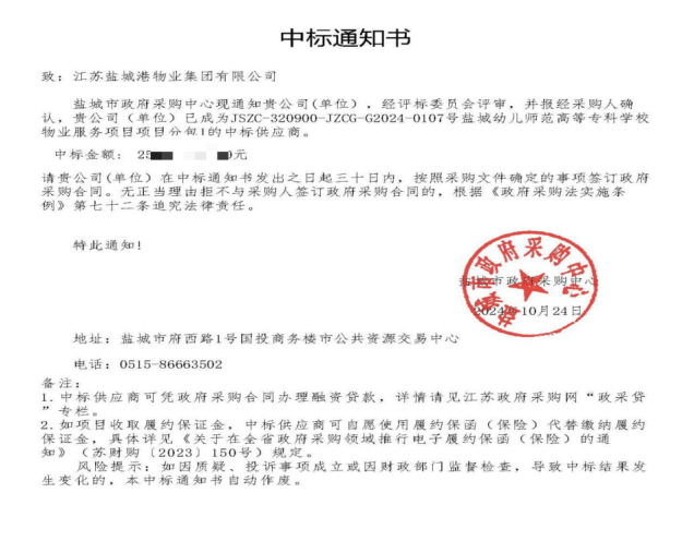 金秋十月,碩果累累,鹽城港物業公司成功中標鹽城幼兒師范高等專科學校物業服務項目,在鹽城大市區外拓市場中實現新突破!項目新增“宿管”“安全員”等服務內容,總服務面積12余萬平方米,中標金額200余萬元,為在管項目領域再添新業績!