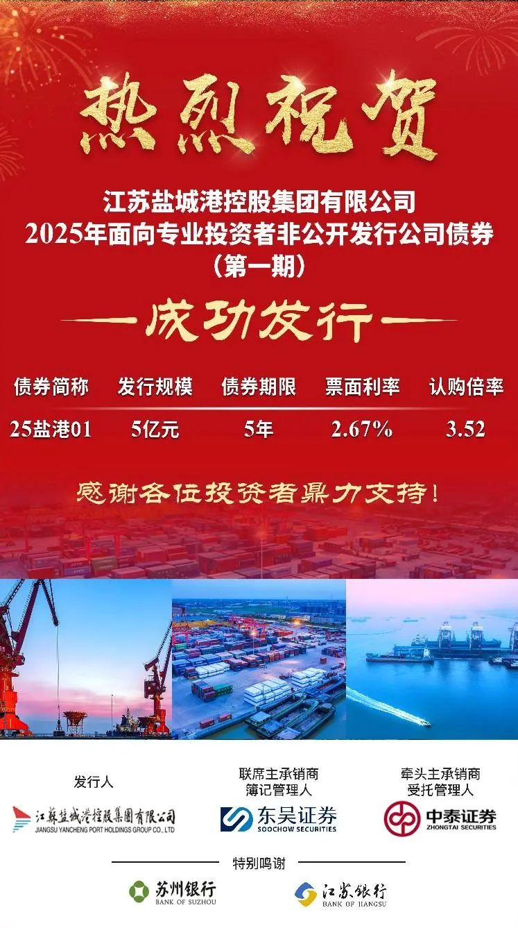 2月13日,集團成功發行2025年度第一期私募公司債。發行規模5億元,期限5年,票面利率2.67%,認購倍率3.52,創集團成立以來同類型、同期限債券產品發行利率新低。