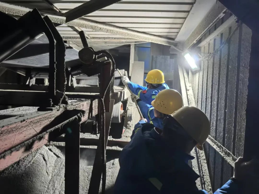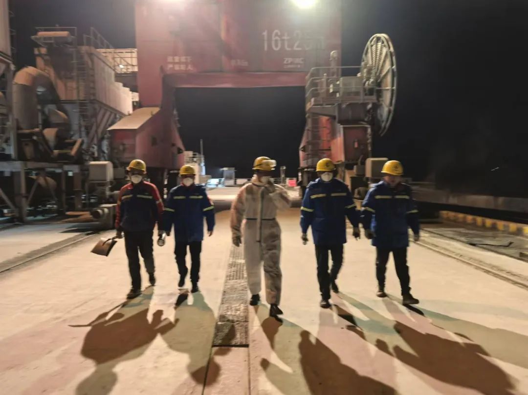 ?面對二次堵料疊加潮位上漲的壓力,現場指揮人員迅速升級應對策略:通過多工種“立體作戰”,維修人員頂著刺骨寒風,用風鎬破碎卡料,人工清掏堵塞物;設備團隊同步調整皮帶機傾角;安全員全程監控作業環境,確保搶修零風險。零下的寒風中,維修人員的手凍得通紅,卻無人停下手中的工具;技術團隊徹夜值守,反復調試設備運行狀態;安全員舉著探照燈全程監護,確保每個環節萬無一失。“故障不排除,隊伍不收兵!”凌晨12時30分,隨著皮帶機重新轟鳴,這場持續近5小時的攻堅戰終告勝利。