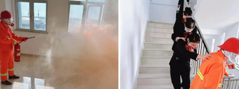 消防知識講座從火災的分類、消防器材的使用、保養等方面向大家生動講解了消防安全重要性。實操模擬火災現場,保安組臨危不懼,一隊手提滅火器、拔掉保險銷、對準火焰根部噴射,“大火”很快被撲滅;另一隊指揮大家用濕毛巾捂住口鼻,彎腰低姿態前行,有序地撤離到安全區域。通過培訓演練,進一步增強了安全意識和臨危不亂的心理素質,以實際行動筑牢了港區的“防火墻”。