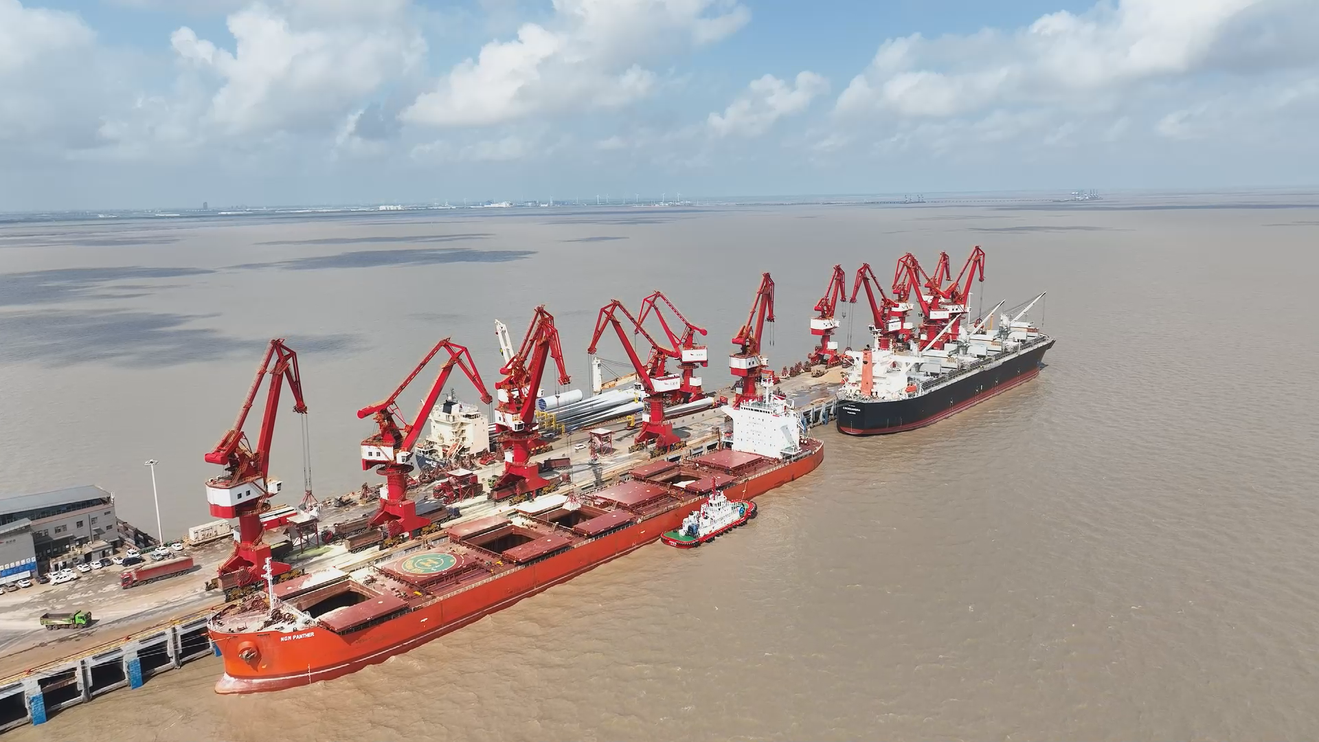 在鹽城港大豐港區(qū)通用碼頭上,來自莫桑比亞的長航潤海號貨輪,滿載6萬噸鈦礦停靠2號泊位正在卸貨,四臺門座式起重機協(xié)同發(fā)力,預計將在3天內卸載完成,滿足內地企業(yè)生產需要。在1號泊位上,來自越南的貨輪滿載木片,也在緊鑼密鼓地卸載,碼頭上運輸車輛川流不息。據了解,為保證在規(guī)定的時間內完成任務,大豐港區(qū)工作人員加班加點組織裝卸。