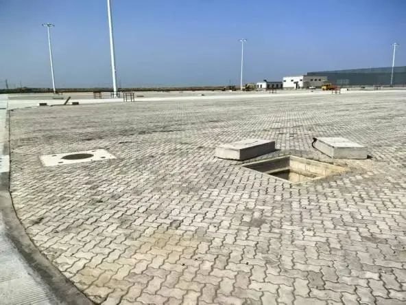 堆場區(qū)域,1處方形電力井蓋因施工疏忽未恢復(fù)井蓋,且未設(shè)置警示反光標(biāo)識,存在人員墜落風(fēng)險(xiǎn)。