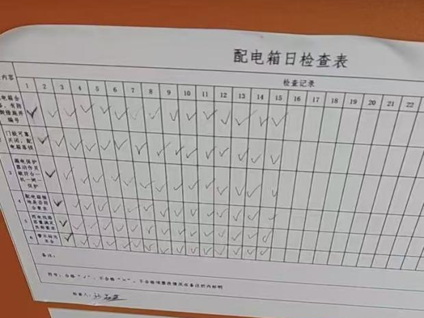 每日對配電箱進(jìn)行實(shí)際檢查(如箱體是否破損、箱門是否關(guān)閉嚴(yán)密、線路是否老化),及時更新檢查記錄,確保檢查記錄與實(shí)際情況一致。
