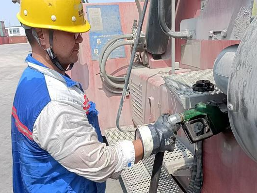 駕駛員和押運(yùn)員們奔波在碼頭與工程機(jī)械設(shè)備之間,負(fù)責(zé)加油和卸油工作。高溫讓駕駛室變成了“桑拿房”,作業(yè)現(xiàn)場(chǎng)更是熱氣逼人,但他們毫不在意,專注地完成每一次任務(wù),確保油品安全、及時(shí)地送達(dá),為設(shè)備的正常運(yùn)轉(zhuǎn)提供支持。