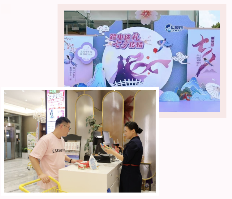 “一針一線細細縫,此物最相思。”門店推出“以禮寄情”活動,購物消費即贈SK-Ⅱ、海藍之謎等大牌小樣,用奢寵好禮承載七夕的濃情蜜意;同步開啟的美妝全場85折優惠,既滿足人們“悅己”的浪漫,也方便大家為心上人準備驚喜,讓每一份消費都不負七夕相思。七夕當天,店內人流如織,情侶相攜、家人同往,熱鬧氛圍遠超平日,人流量較常日提升60%,消費額增長30%,真正實現了“禮傳心意,情滿夕宵”,讓七夕的愛意在消費場景中愈發濃厚。