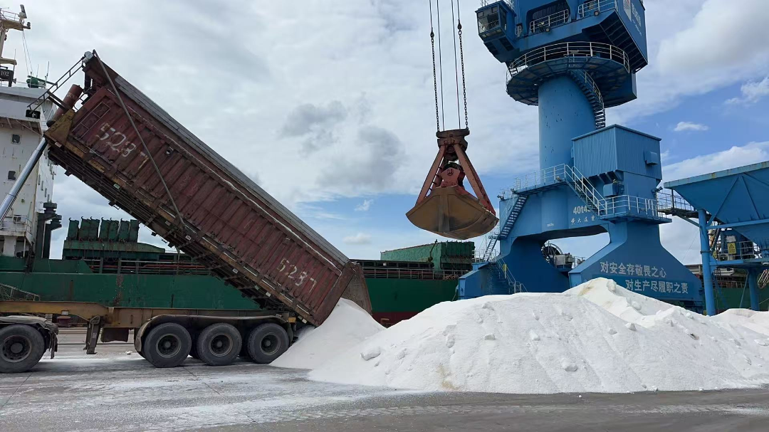 “白金”貨種表現亮眼,工業鹽與噸袋純堿成為增長亮點。“百日攻堅”啟動以來,依托徐宿淮市場拓展,淮安地區工業鹽業務呈現爆發式增長,9月吞吐量達去年同期的520%;純堿、化肥集港量穩步提升,化工類貨種結構不斷豐富,凸顯響水港在化工原料物流領域的專業能力與市場吸引力。