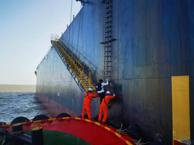 在登輪過程中,規(guī)范要求必須嚴格執(zhí)行標準化操作流程。交通艇需選擇船舶平順部位停靠,避開危險區(qū)域。引航員攀爬軟梯時,須運用“三點接觸法”保持穩(wěn)定,密切觀察船舶動態(tài),謹慎攀爬。面對惡劣海況,規(guī)范要求必須果斷暫停,并可啟動直升機登輪等應急預案,堅決杜絕冒險作業(yè)。
