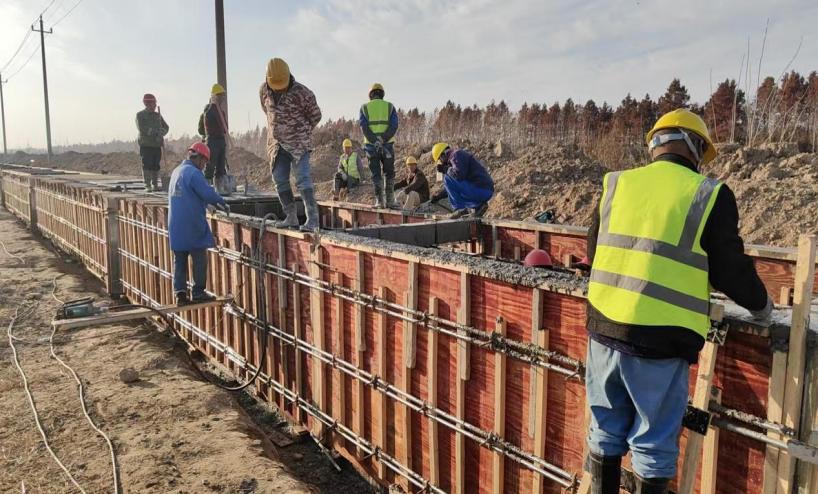 連日來(lái),鹽農(nóng)華豐農(nóng)業(yè)和海昌農(nóng)業(yè)高標(biāo)準(zhǔn)農(nóng)田建設(shè)工地上,多臺(tái)工程機(jī)械正在新建的防滲渠旁開足馬力加緊作業(yè),幾名工人在鋼筋模板間忙著澆筑混凝土;不遠(yuǎn)處,幾名工人在忙著綁扎鋼筋,為下一步安裝模板、澆筑混凝土做準(zhǔn)備。自項(xiàng)目開工以來(lái),公司立足實(shí)際,搶抓晴好天氣,科學(xué)組織施工力量和機(jī)械設(shè)備,緊盯時(shí)間節(jié)點(diǎn),鉚足干勁搶工會(huì)戰(zhàn)。渠道開挖、鋼筋綁扎、模板安裝及混凝土澆筑有序推進(jìn),涵洞開挖及澆筑同步展開。接下來(lái),將繼續(xù)以“搶時(shí)間、提效率、強(qiáng)質(zhì)量”為核心,全力推進(jìn)橋涵、溝道襯砌、砂石路面層等關(guān)鍵工程建設(shè),確保項(xiàng)目早日建成投用,為農(nóng)業(yè)生產(chǎn)提質(zhì)增效奠定堅(jiān)實(shí)基礎(chǔ)。