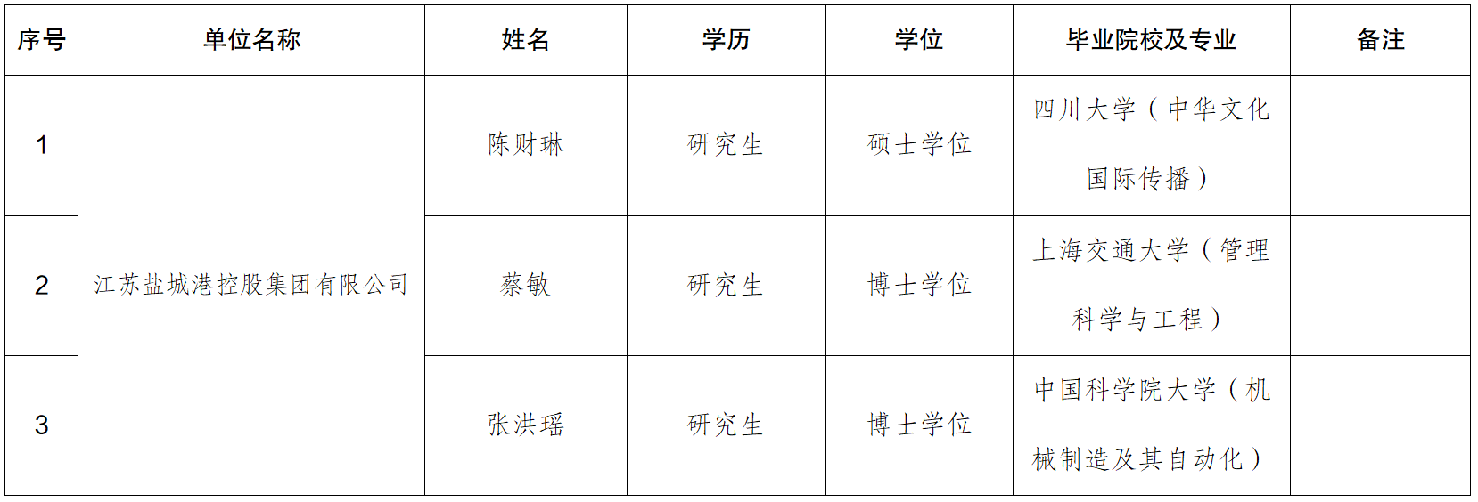 2022年鹽城市第一批面向全國(guó)部分高校和 境外世界名校引進(jìn)優(yōu)秀畢業(yè)生鹽城港集團(tuán)擬聘用人員名單公示(三)
