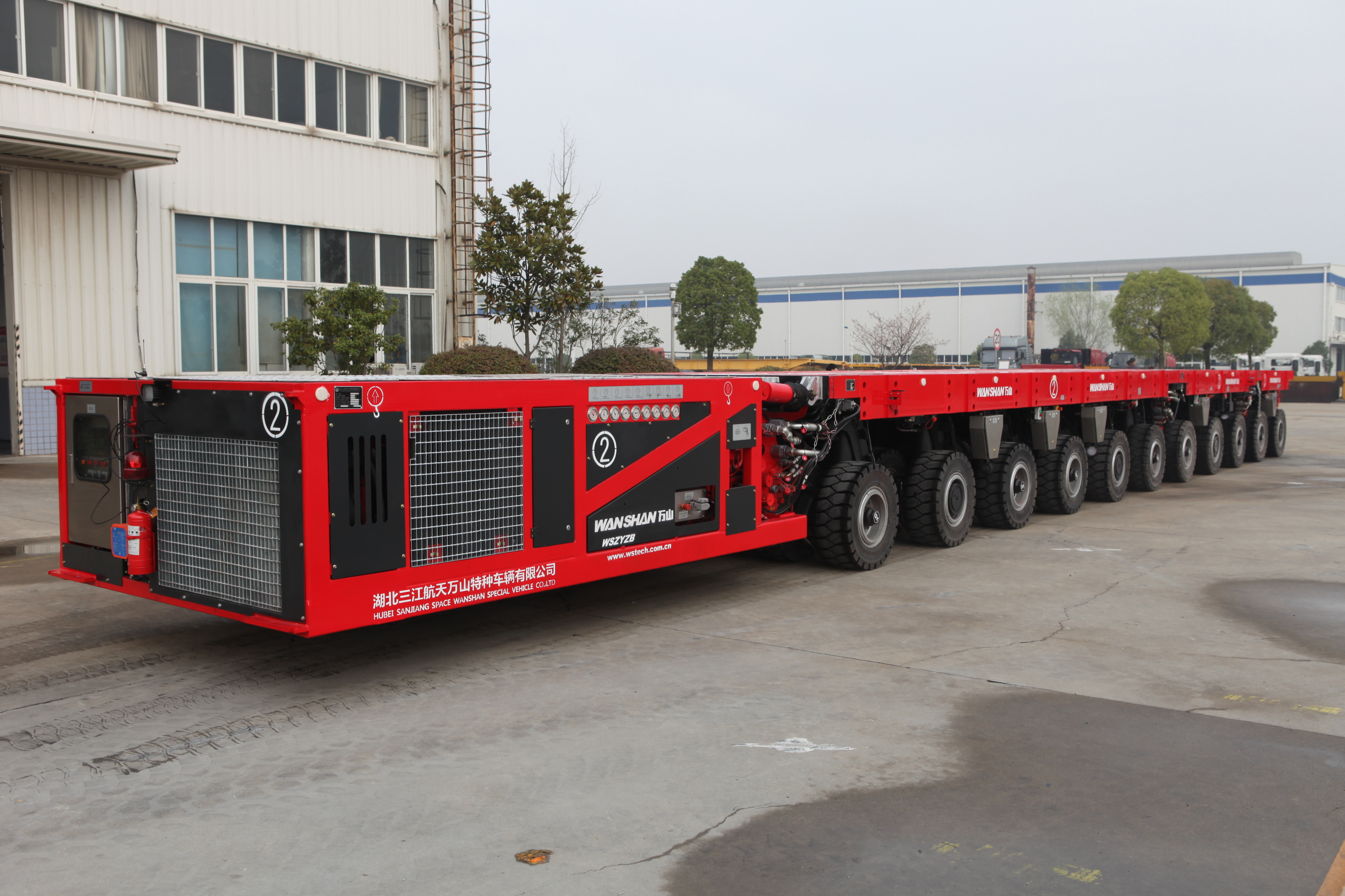SPMT自行式模塊運輸車,又名自行式液壓平板車,此車輛是萬山公司生產(chǎn),為江蘇鹽城港控股集團有限公司所有。