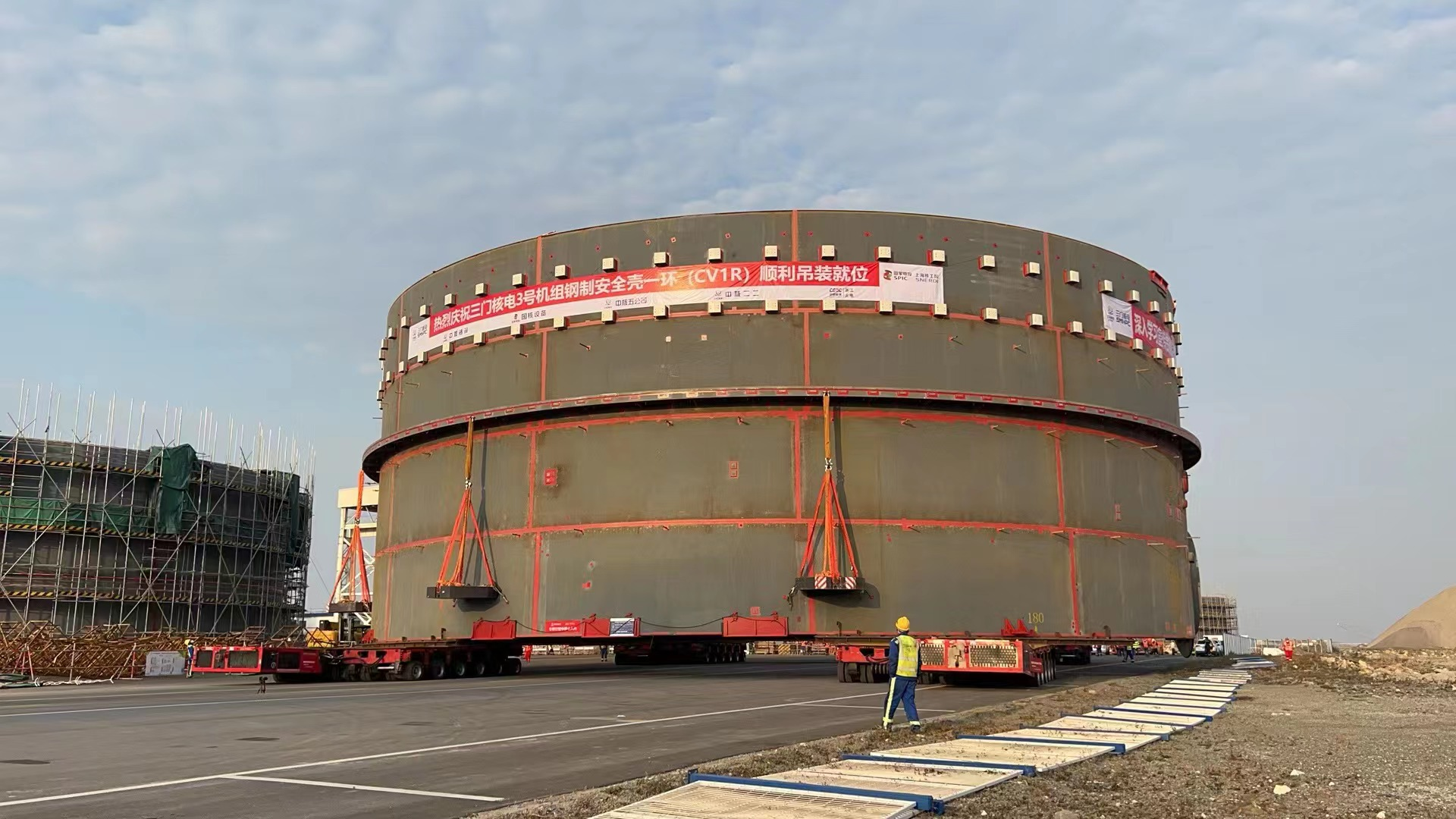 自行式模塊運輸車整車寬3m,由4套動力模塊單元、8臺模塊單元車以及并車所需附件組合而成,共56軸線。此車配備了液壓驅(qū)動、液壓升降、液壓轉(zhuǎn)向的特種車輛,運輸車整體長度可根據(jù)貨物裝載的需要,可將動力車組進行自由拼接,聯(lián)動作業(yè),可實現(xiàn)同步前進、倒退、原地轉(zhuǎn)向、水平移動,堪稱中國版“變形金剛”。此自行式模塊運輸車曾參加過國慶閱兵、三門核電設備運輸?shù)却笮突顒印?/p>