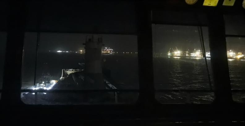 接到求助后,引航站迅速組織專業團隊趕赴現場。在登輪勘察后,團隊成員綜合研判氣象條件與作業進度,決定待貨物卸載完畢后再擇機出港。當晚22:00,引航員登輪,在拖輪配合下頂風浪開始引航。面對復雜海況,引航員依托豐富經驗謹慎操縱船舶,通過實時監測風浪、科學規劃航線,確保船舶以安全航速穩步離港。船舶航行途中遭遇突發陣風,引航員迅速采取應急措施,及時修正航向,歷經數小時緊張作業,最終成功將“探界者”輪安全引領至外海避風錨地。事后,江蘇鹽城港海融石化碼頭有限公司專程向鹽城港引航站贈送錦旗,書以“排憂解難 保駕護航”表達謝意。
