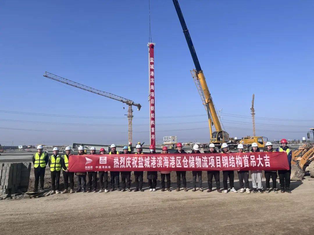 據了解,鹽城港濱海項目鋼結構工程涉及1#—6#件雜貨倉庫、淺圓倉、提升塔、卸糧棚、設備庫房等,單跨最大跨度為27米。項目鋼結構用量共計3500噸,計劃施工周期150天。