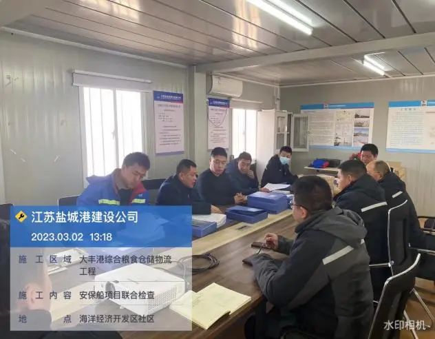 為深入貫徹黨的二十大精神,全面落實集團黨委一屆三次全體(擴大)會議各項工作部署,進一步強化公司安全生產主體責任,及時消除各類安全隱患,保障公司工程項目健康有序建設,實業集團建設公司與智慧港口公司、項目管理公司及實業集團安全環保部組成聯合檢查組,以打造“平安工地”為立足點,對鹽城港大豐港區工作船安保設施工程開展聯合檢查治隱患行動。