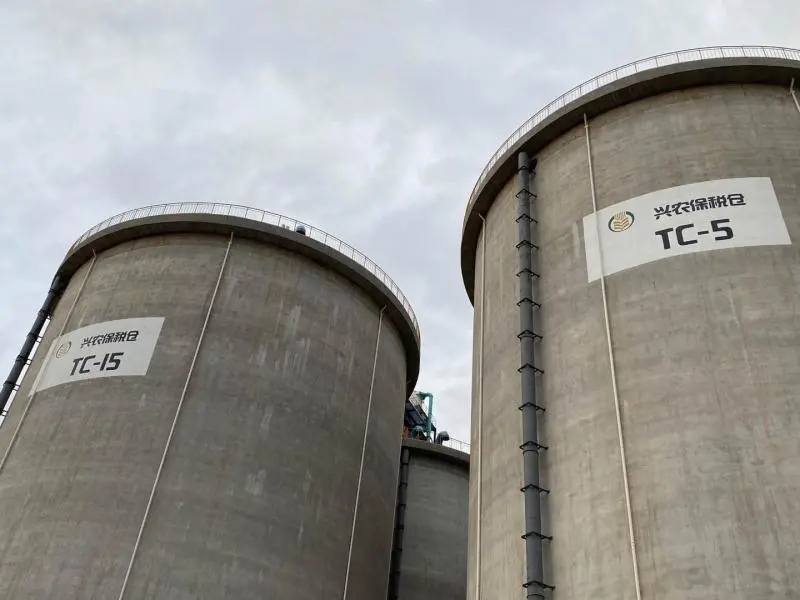 近年來,為進一步擴大對外開放,大豐港集團積極開展保稅倉申請工作。大豐港大宗農產品倉儲物流項目一期工程建設規模為15座混凝土筒倉及配套設施,總倉容22.5萬噸,其中北側兩排10座筒倉于2019年10月25日取得《南京海關關于同意設立江蘇大豐港興農農產品倉儲物流有限公司公用型保稅倉庫的批復》,保稅倉容為15萬噸。目前該項目已完工,并順利通過驗收。