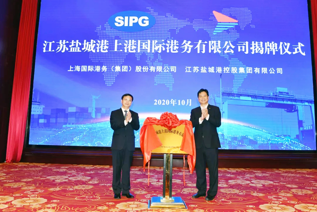 10月30日下午,滬鹽港航合作活動暨鹽城港集裝箱海河聯運航線推介會在鹽城舉行,江蘇鹽城港控股集團和上海國際港務集團簽訂戰略合作協議。鹽城市市長曹路寶、上海國際港務集團總裁嚴俊出席,共同為合資成立的江蘇鹽城港上港國際港務有限公司揭牌。