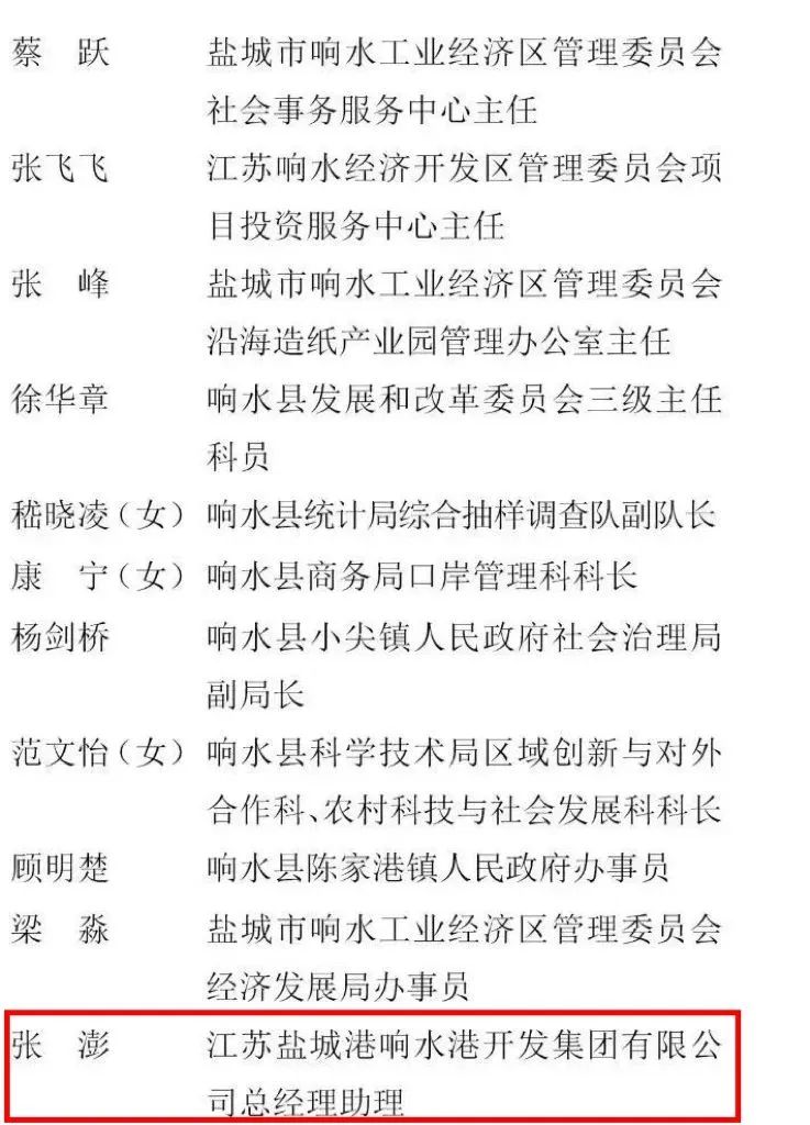 近日,經(jīng)省委、省政府批準(zhǔn),市委、市政府決定表彰一批鹽城市沿海地區(qū)產(chǎn)業(yè)高質(zhì)量發(fā)展先進(jìn)集體和先進(jìn)個(gè)人。江蘇鹽城港響水港開發(fā)集團(tuán)有限公司總經(jīng)理助理張澎同志榮獲“鹽城市沿海地區(qū)產(chǎn)業(yè)高質(zhì)量發(fā)展先進(jìn)個(gè)人”榮譽(yù)稱號。